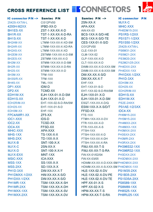 icconnectors, 2mm, 2,54mm, 1,50mm, 1,25mm, 1,00mm,0,50mm,
